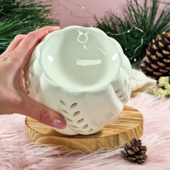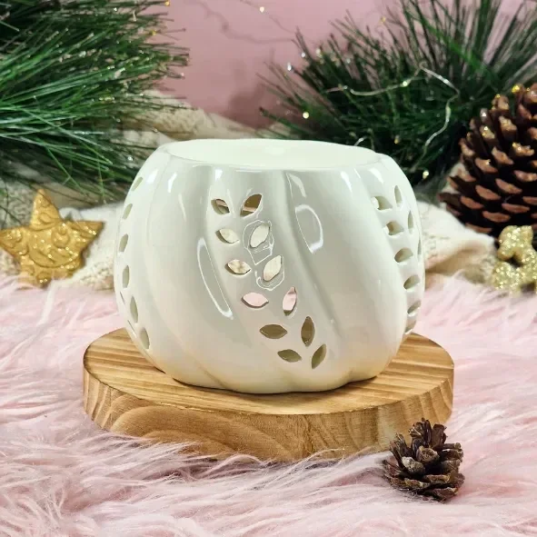 Un joli brûle-parfum en céramique blanche, tout en rondeur et en douceur. Sa forme épurée et son fini délicatement brillant en font une pièce chic et intemporelle, parfaite pour diffuser vos fondants parfumés tout en décorant votre intérieur.