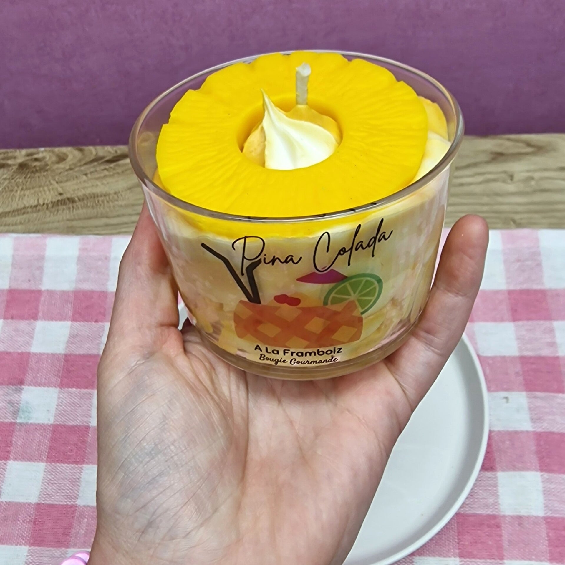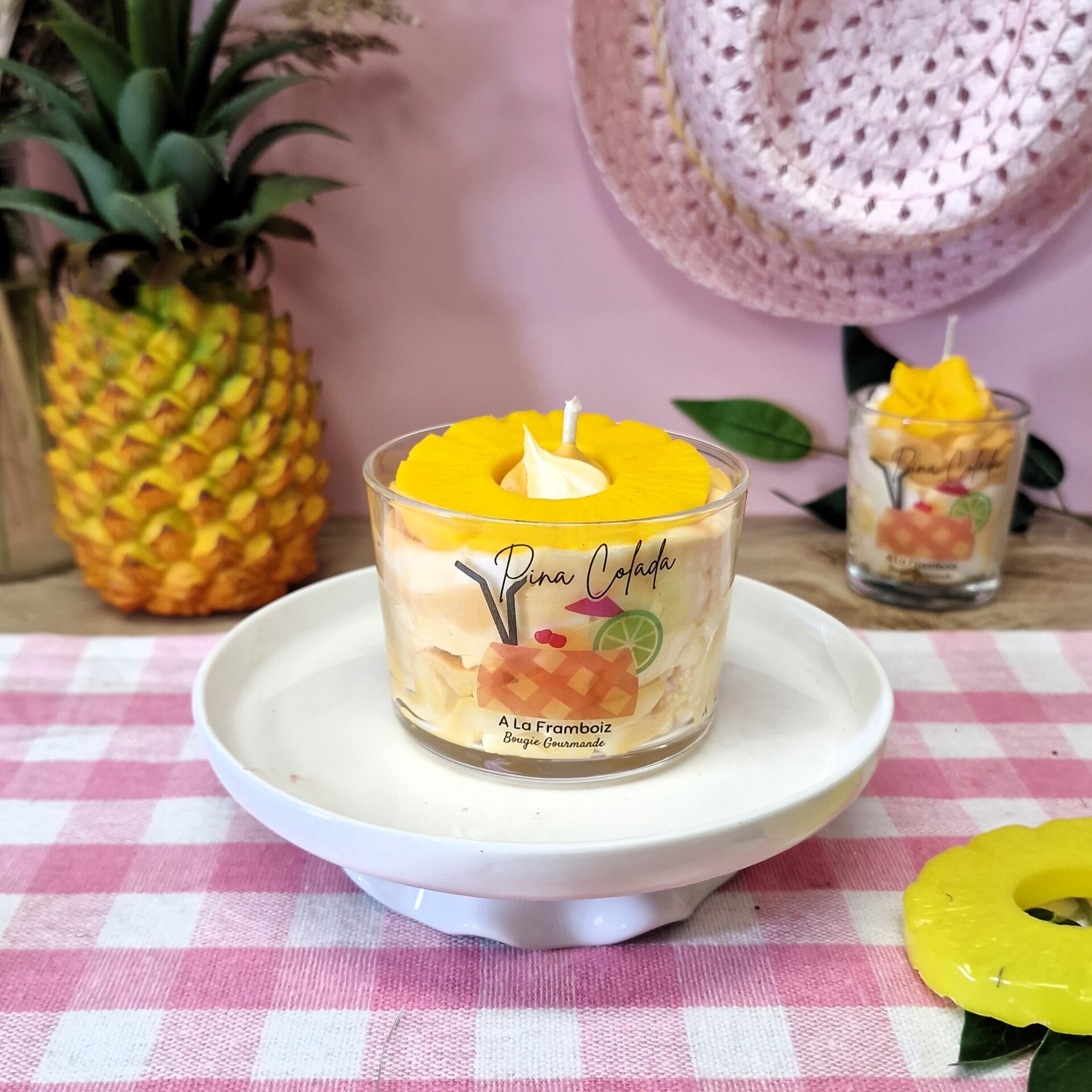 🍍 Envie de sable chaud et de fruits exotiques ? La Bougie Gourmande Piña Colada marie l’ananas juteux et la noix de coco pour une ambiance ensoleillée à la maison.