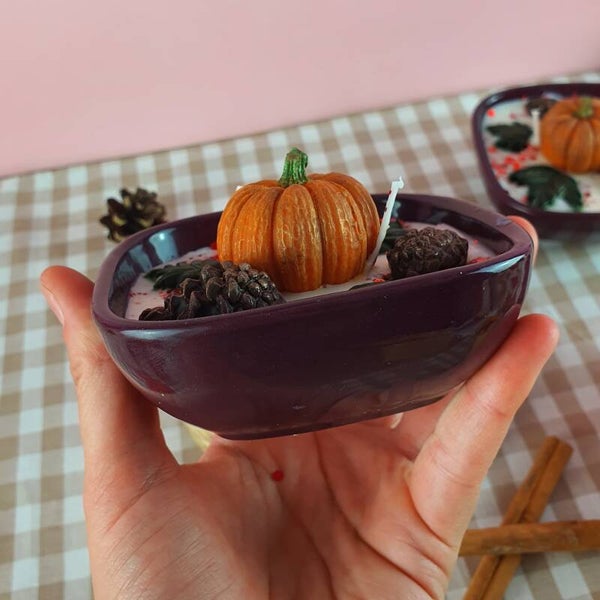 🍂 Apportez la magie de l’automne chez vous avec des bougies d'automne décoratives, ornées de feuilles et de pommes de pin, diffusent chaleur et élégance. Parfum au choix : Chocolat Noisettes ou Pain d’Épices.