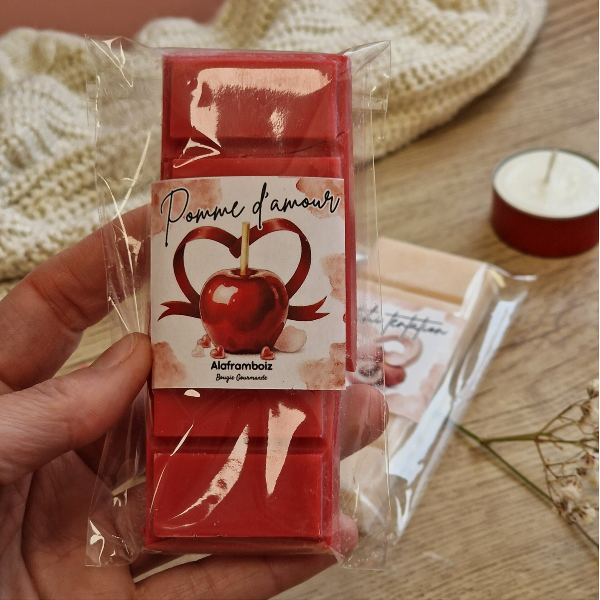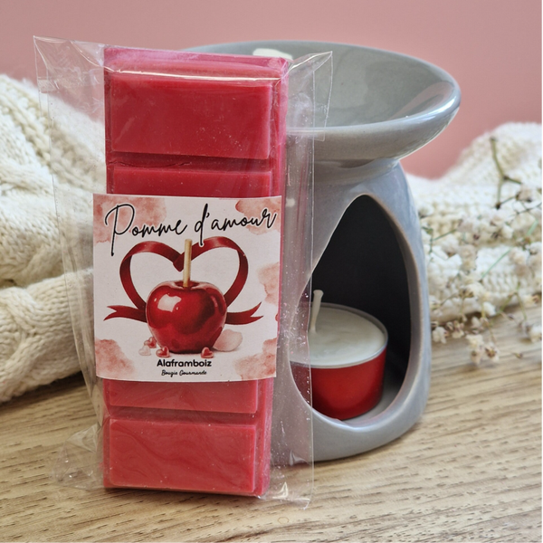 Envie d'une ambiance romantique immédiate ? La tablette de fondant parfumé Pomme d'amour diffuse des notes sucrées et envoûtantes qui transforment votre maison en un cocon d'amour. Un indispensable du bien-être pour une soirée en amoureux (ou en solo avec ses chats !) sous le signe de la gourmandise.