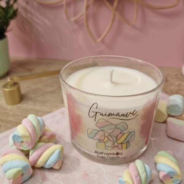 🍬 Retrouvez la douceur d'une parenthèse réconfortante et poudrée avec la bougie parfumée guimauve.
